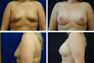 Case 829 Age: 36 Years Procedure(s): Breast Augmentation (Augmentation Mammoplasty / Breast Implants) Post-Op Period: 1 Year Implant Volume: 350 cc – Right filled to 450 cc – Left filled to 415 cc